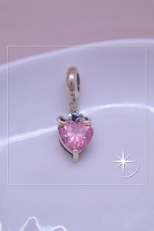 CHARMS CORAÓN ROSA PLATA LEY 925