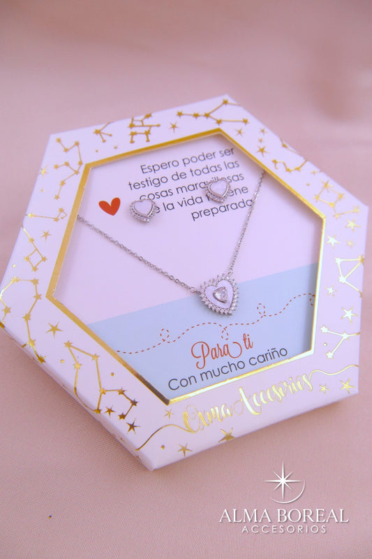 CONJUNTO CORAZÓN PLATEADO RODIO