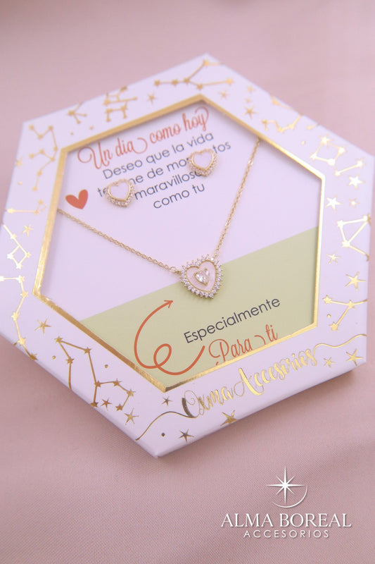CONJUNTO CORAZÓN ELEGANTE RODIO