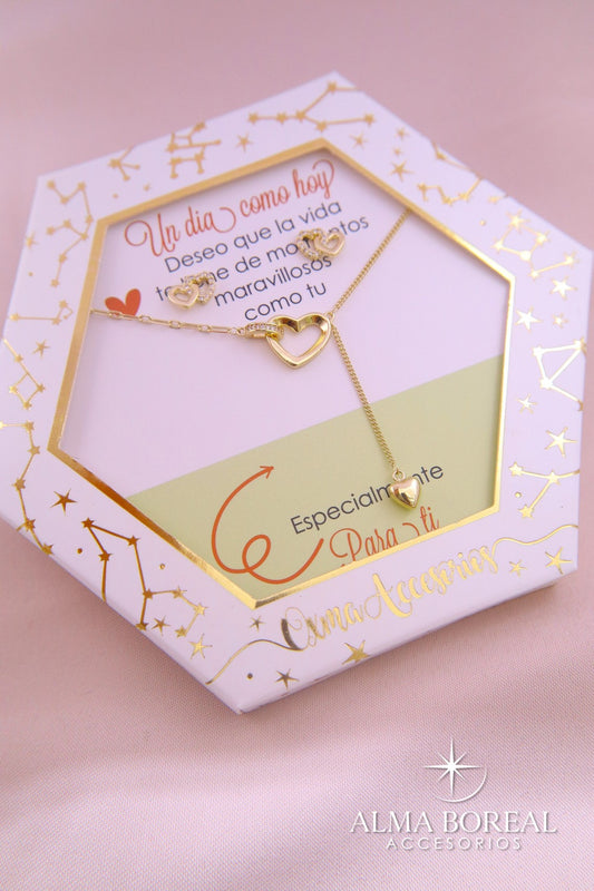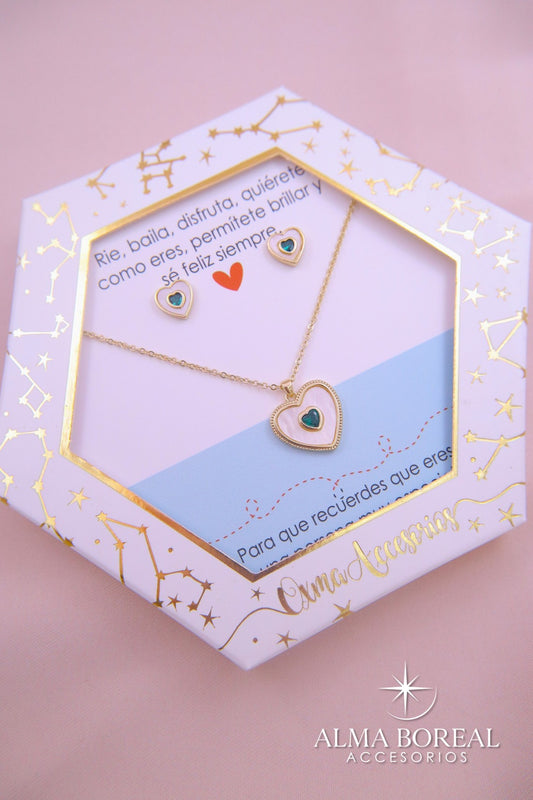 CONJUNTO CORAZÓN TOQUE CRISTAL RODIO