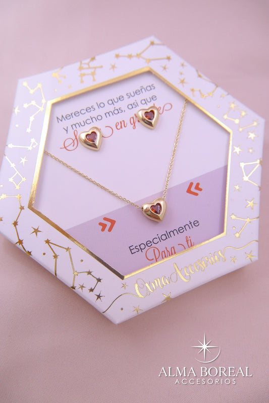 CONJUNTO CORAZÓN TOQUE ROJO RODIO