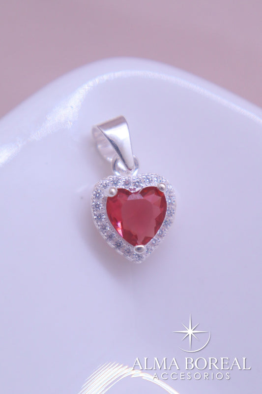 DIJE CORAZÓN RUBÍ PLATA LEY 925