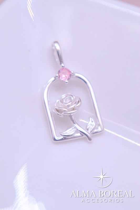 DIJE ROSA ENCANTADA PLATA LEY 925
