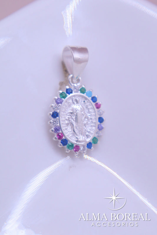 DIJE VIRGEN MULTICOLOR PLATA LEY 925