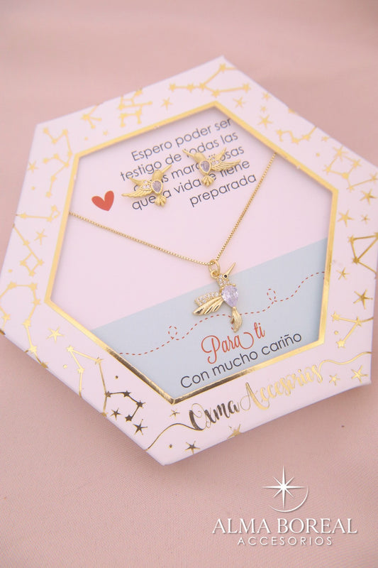 CONJUNTO ALMA DE COLIBRÍ RODIO