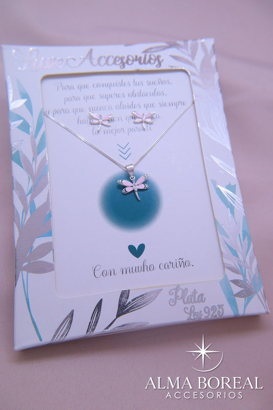 CONJUNTO LIBÉLULA ENCANTADA PLATA LEY 925