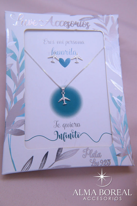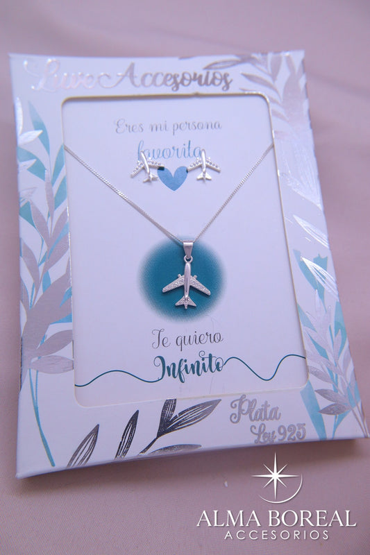 CONJUNTO AVIÓN VIAJERO PLATA LEY 925