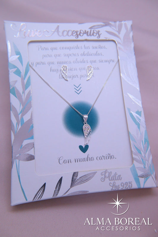 CONJUNTO ALAS DE ÁNGEL PLATA LEY 925