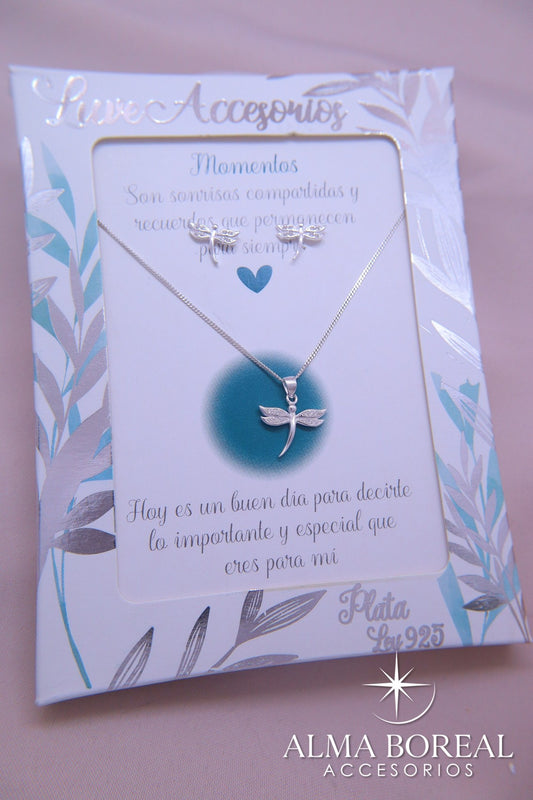 CONJUNTO LIBÉLULA EN PLATA LEY 925