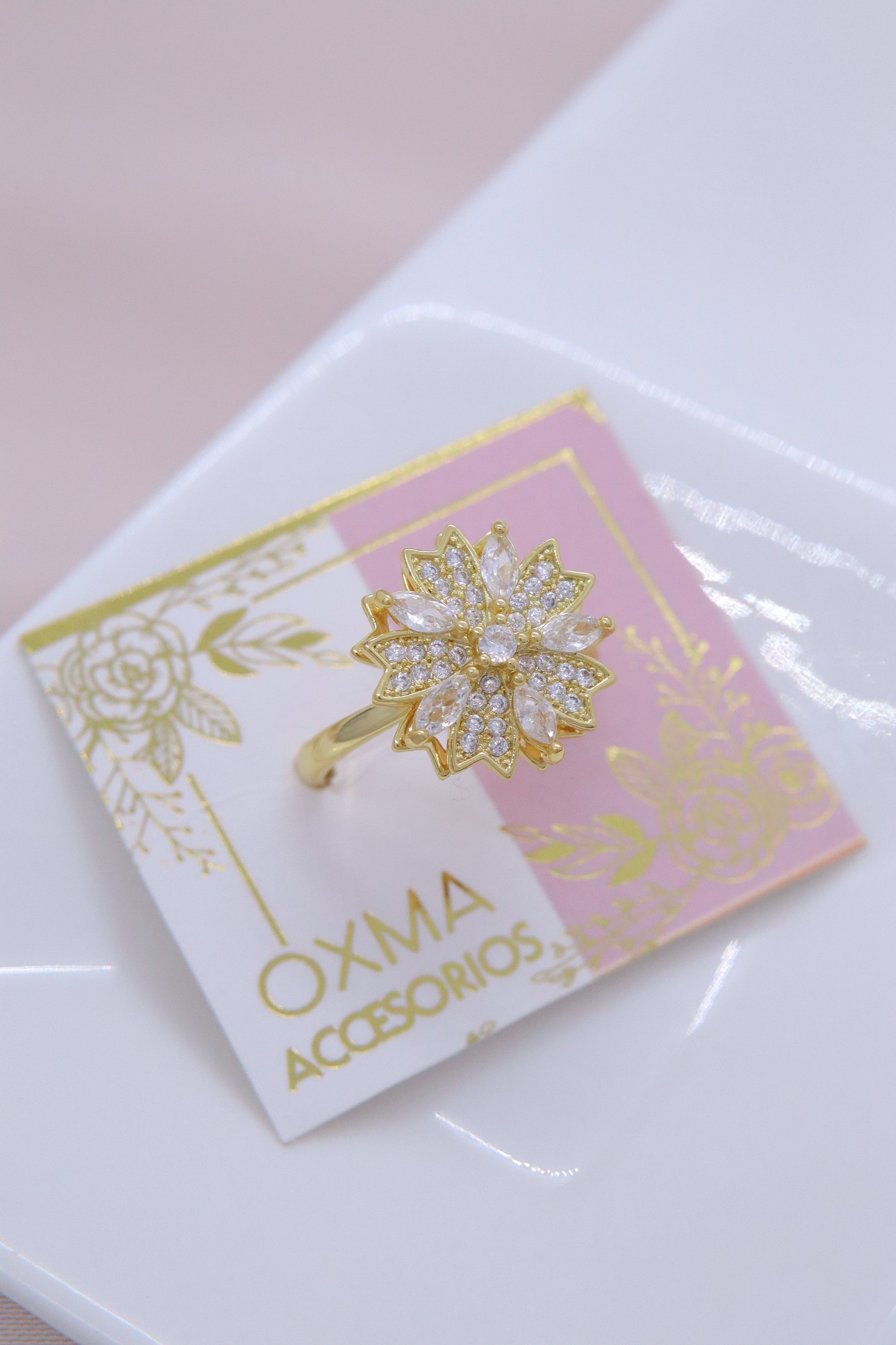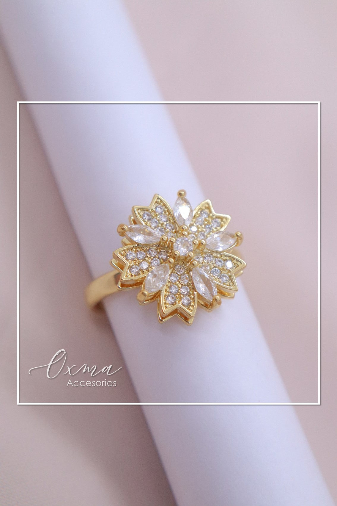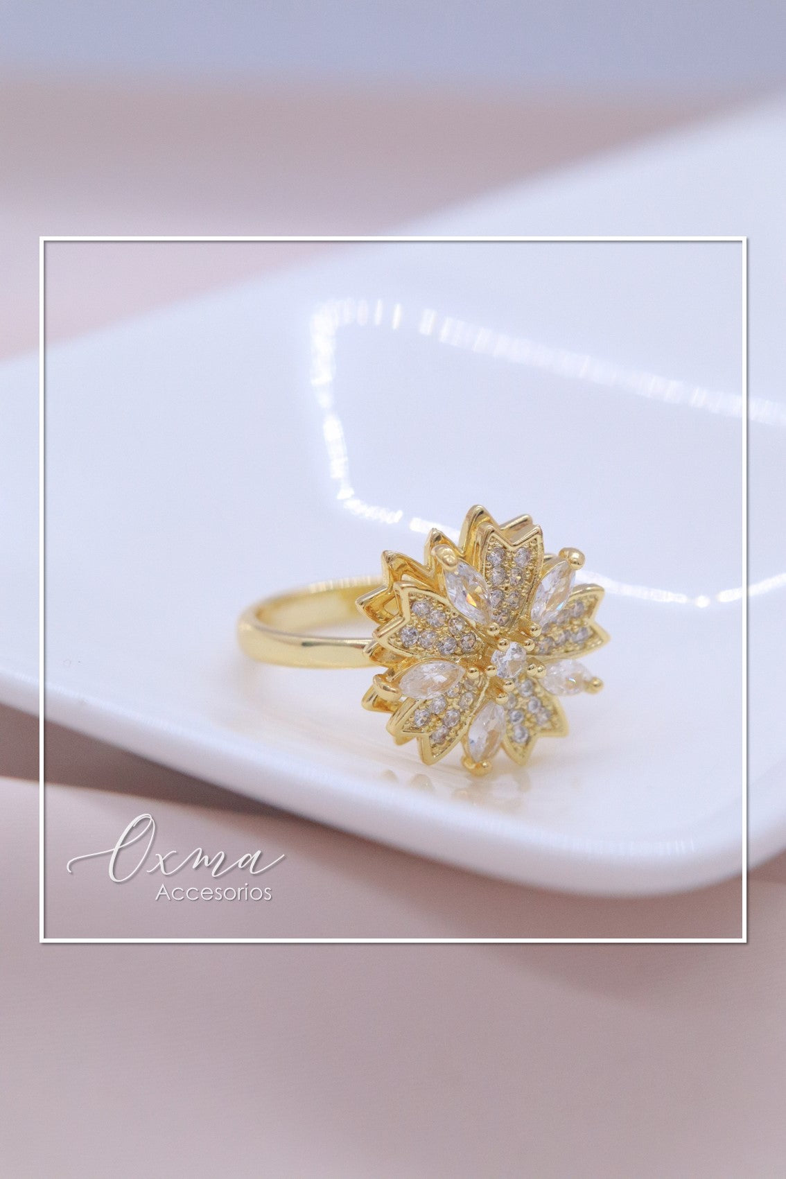 ANILLO FLOR GIRATORIA CON CIRCONES