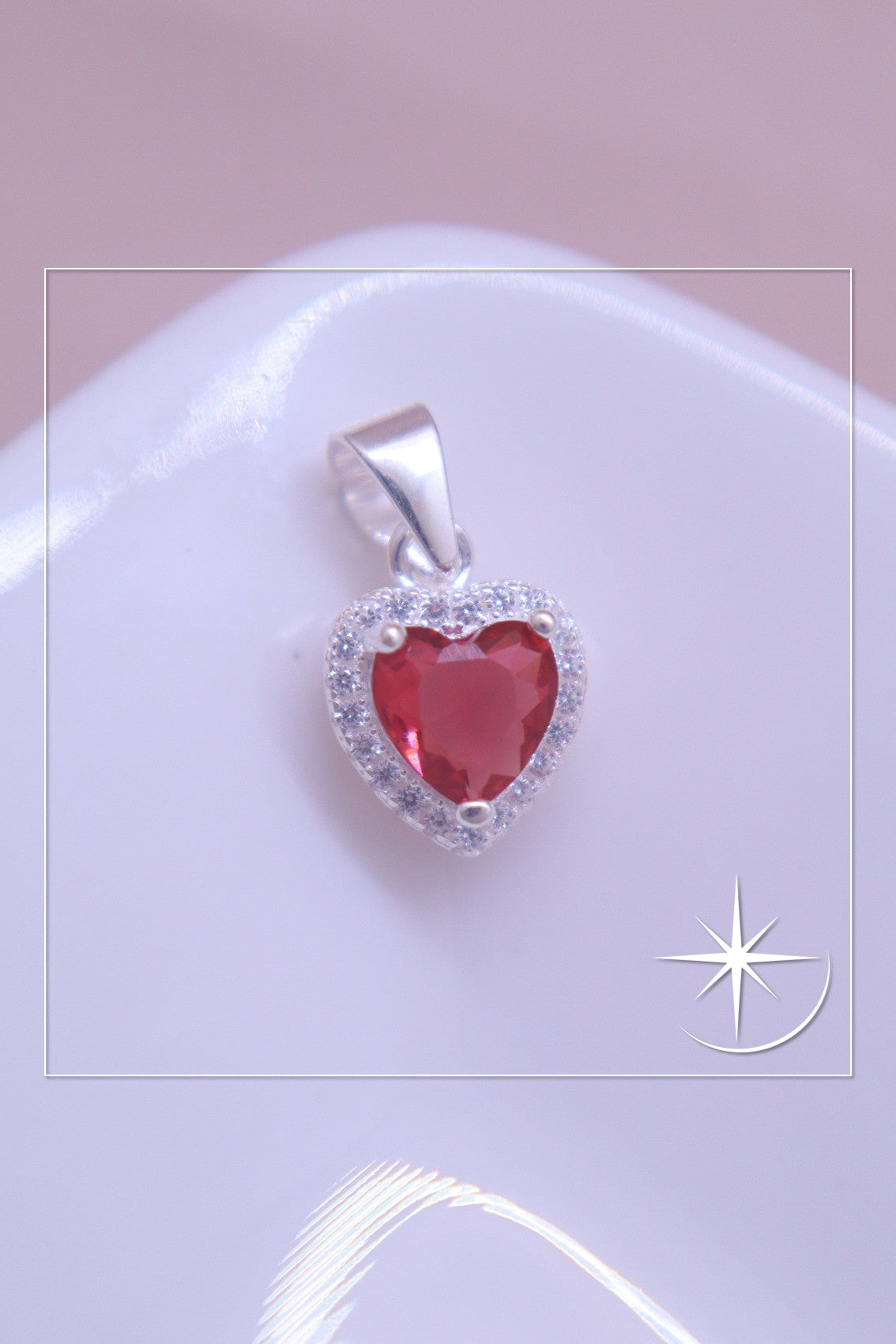 DIJE CORAZÓN RUBÍ PLATA LEY 925