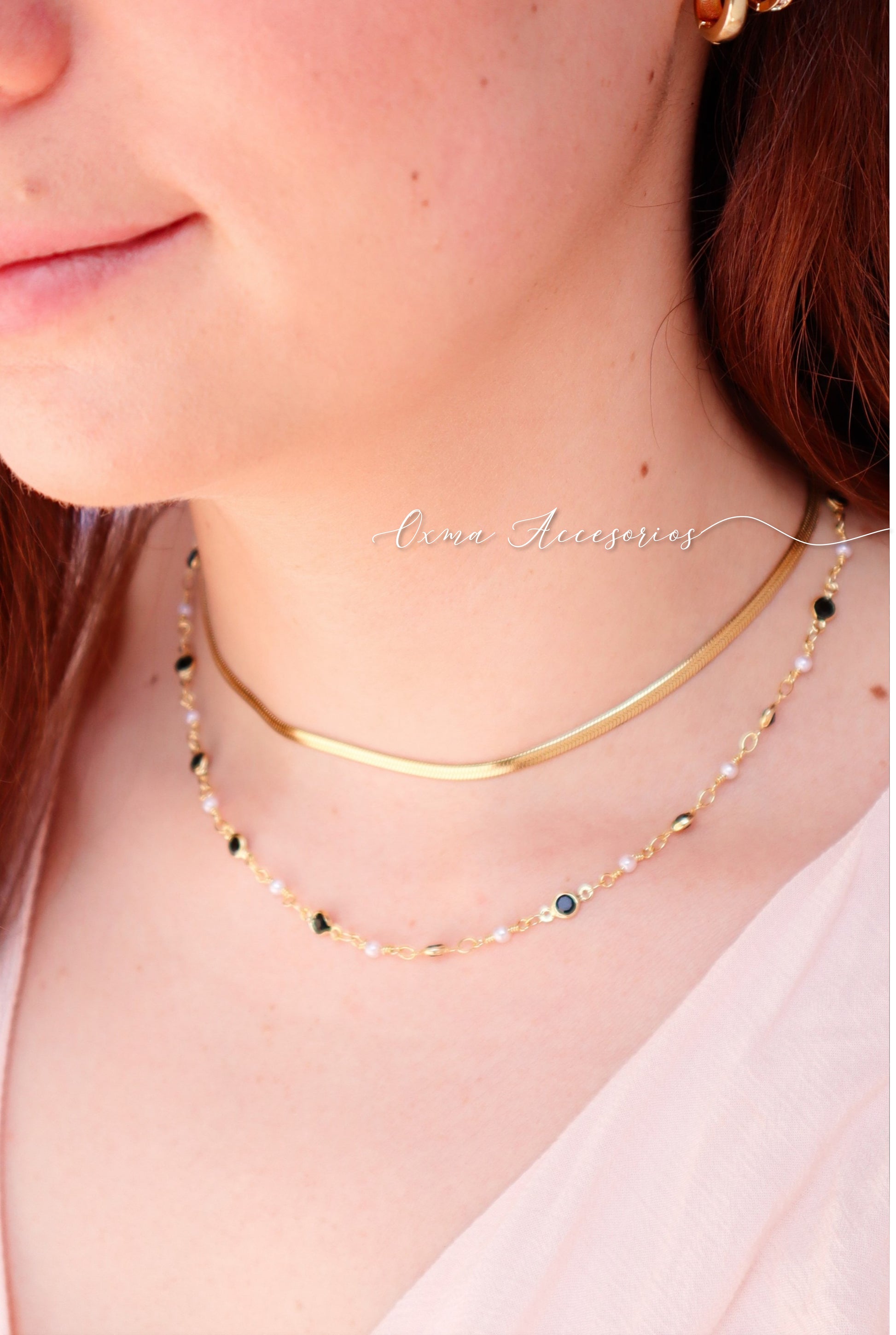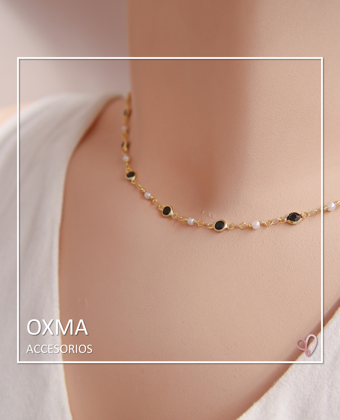 Esta gargantilla es perfecta para combinar ya que su medida es ajustable y se puede usar con collares mas largos o mas cortos. Si quieres un estilo mas sobrio la puedes usar sola y tendrás un outfit elegante y delicado