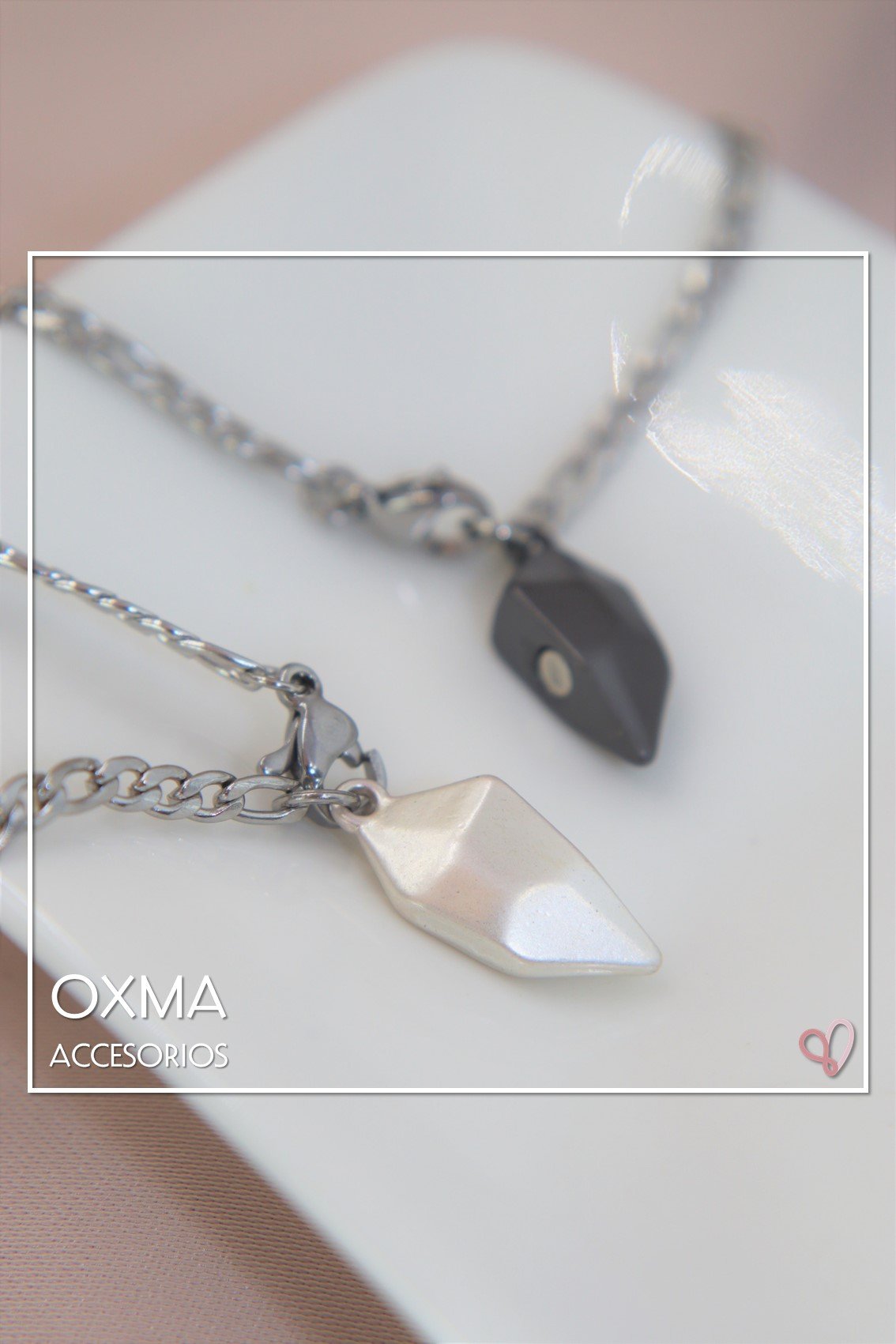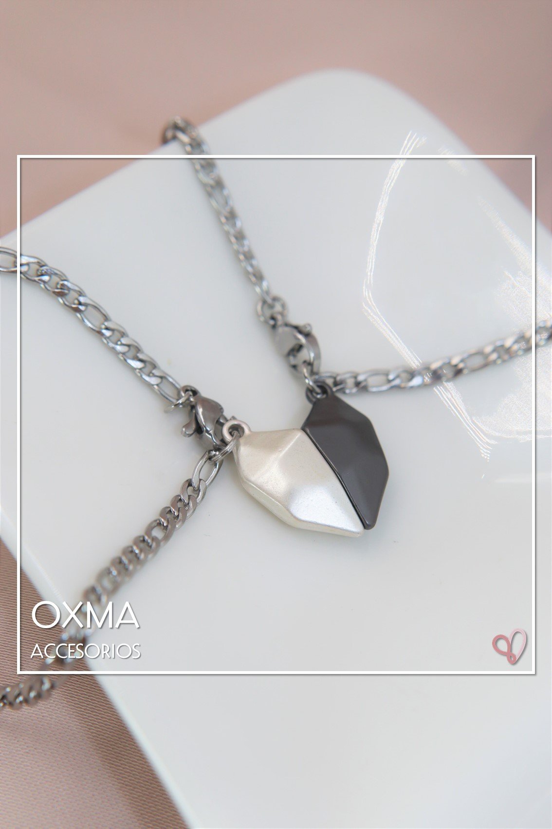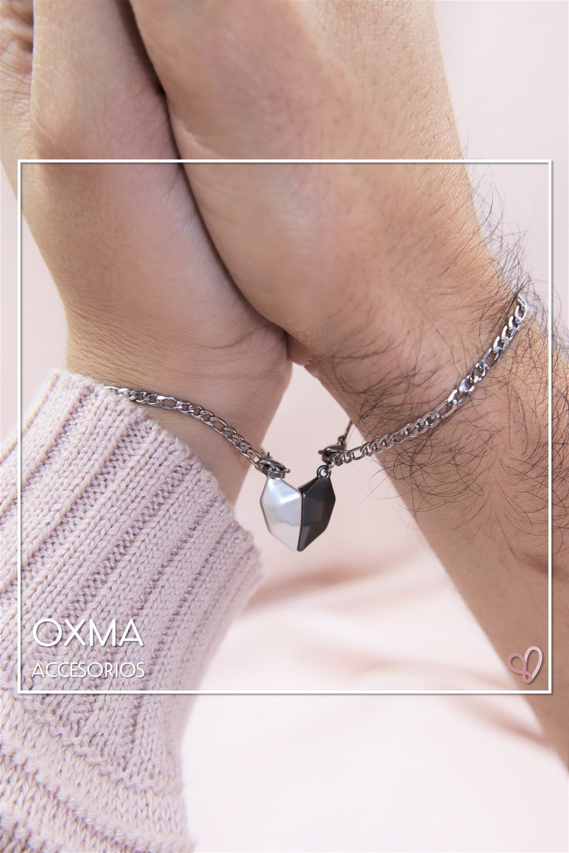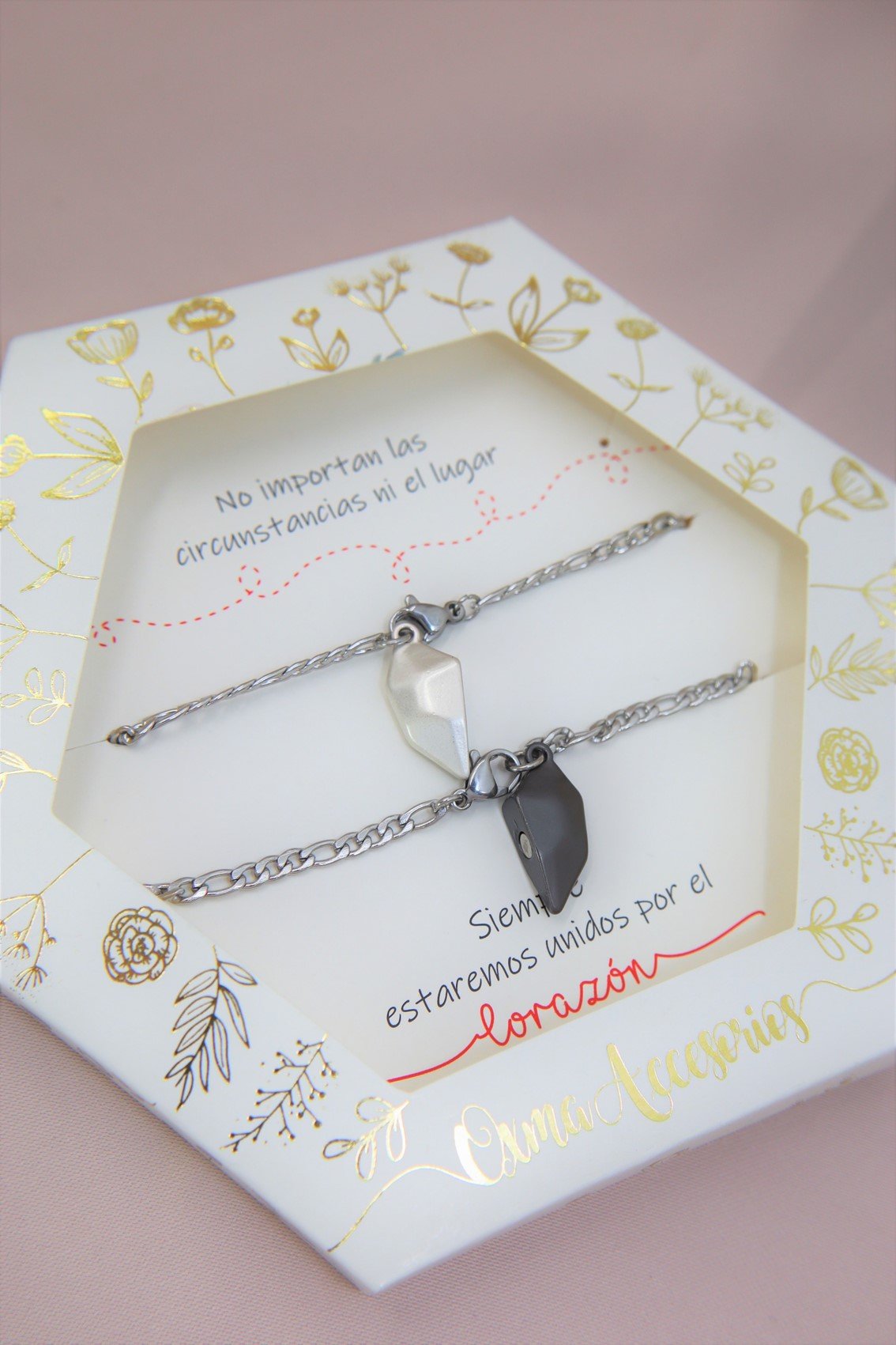 Pulseras para pareja en acero inoxidable, con dije de corazón imantado.